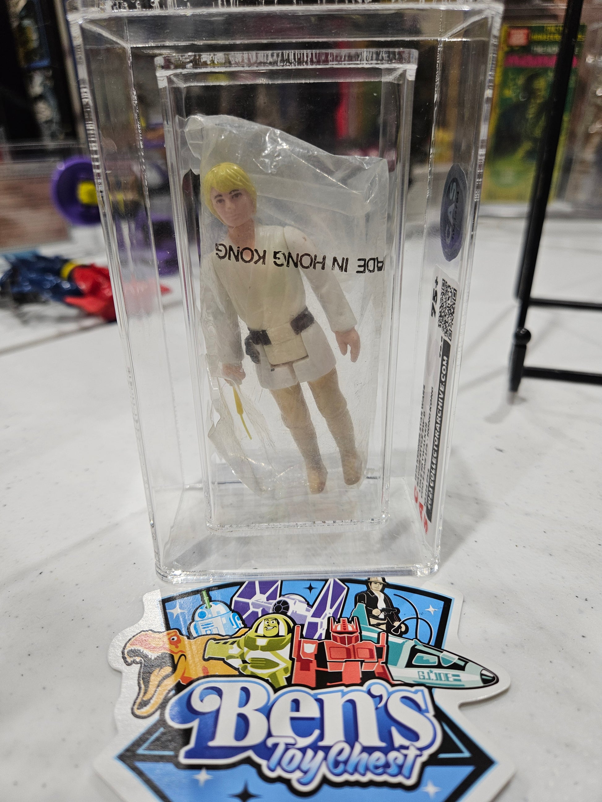 Ignite your vintage run with this 1978 Kenner Star Wars Luke Skywalker, sealed in SW-D baggie style, featuring the 3-line LFL Hong Kong COO and graded CAS 75+ (V-score: 78.6)—a loose sealed figure that channels Early Bird legacy with collector-grade authenticity.