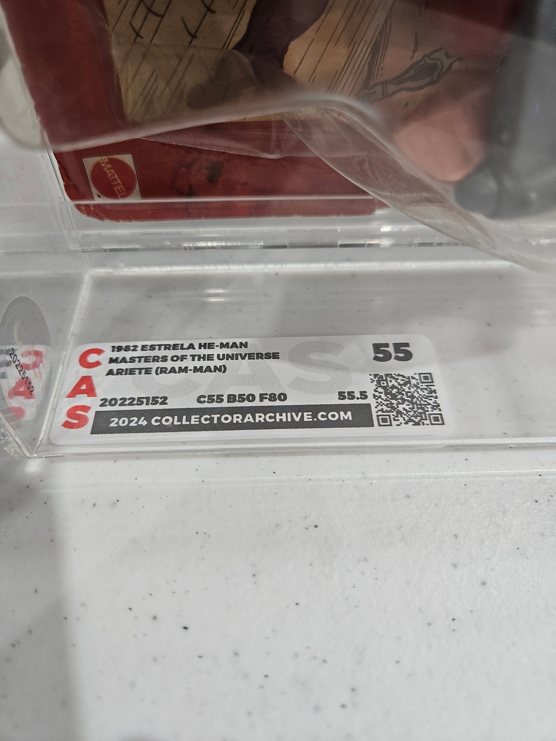 A Brazilian bruiser with battle-worn legacy! 🪖 The 1982 Estrela Masters of the Universe ARiete (Ram-Man), graded CAS 55, is a rare and culturally significant variant from Mattel’s South American partner Estrela, released during the earliest wave of MOTU figures. With subgrades C55/B50/F80, this example shows heavy packaging wear but retains strong historical value—especially for international variant collectors and packaging historians.
