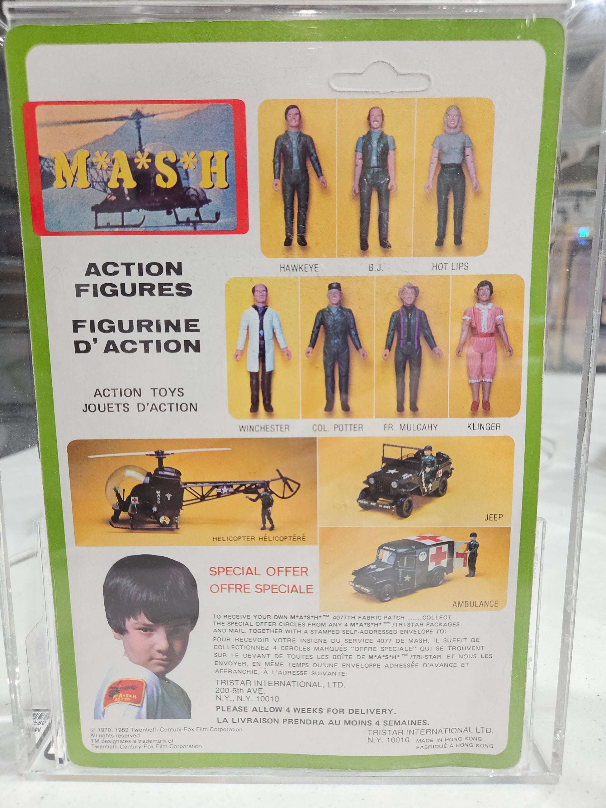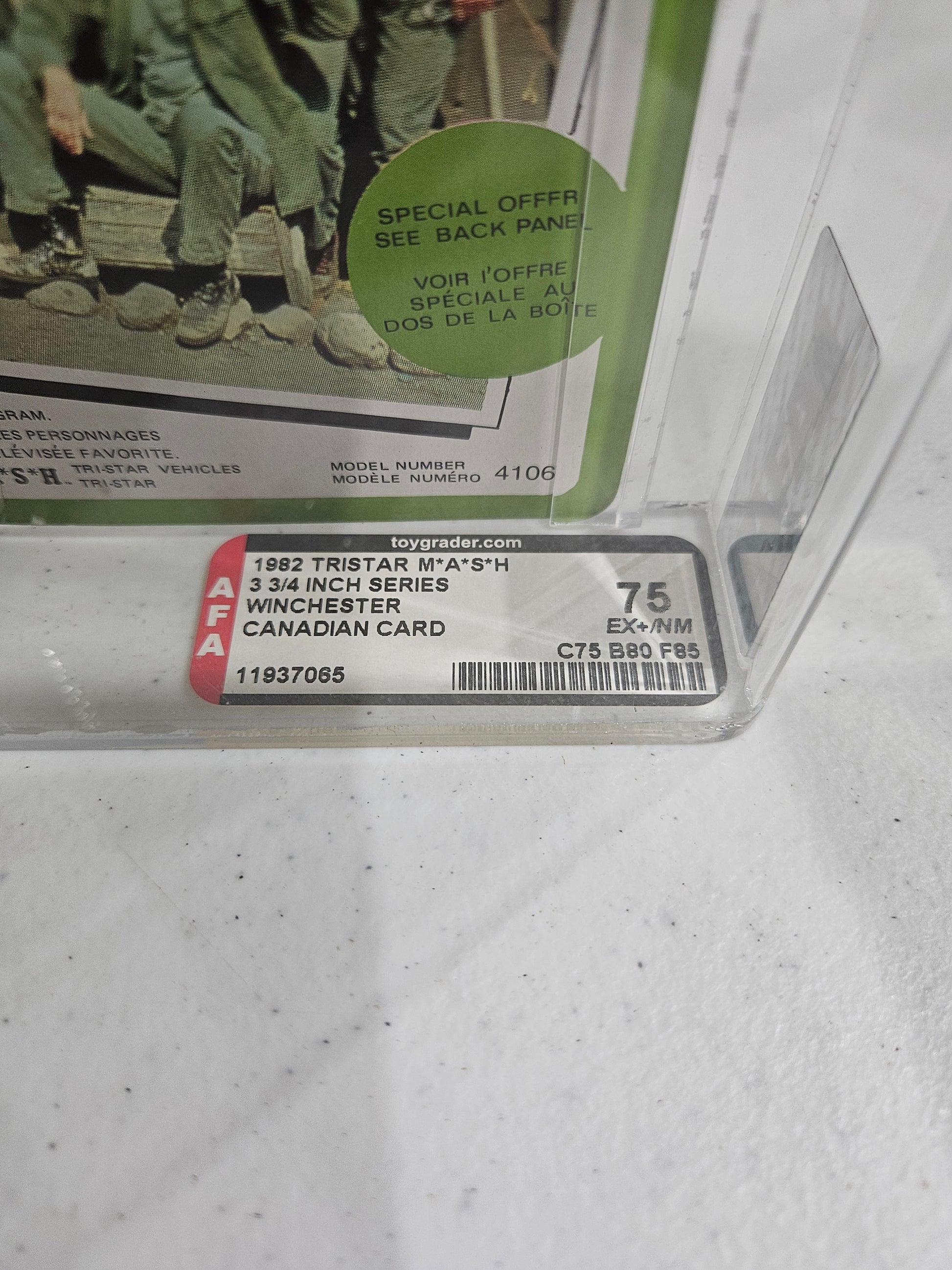 A sharp-dressed surgeon with northern provenance! 🩺 The 1982 Tristar MASH Winchester*, graded AFA 75 EX+/NM with subgrades C75/B80/F85, is a rare Canadian carded variant from Tristar’s short-lived 3.75" action figure line based on the iconic TV series.