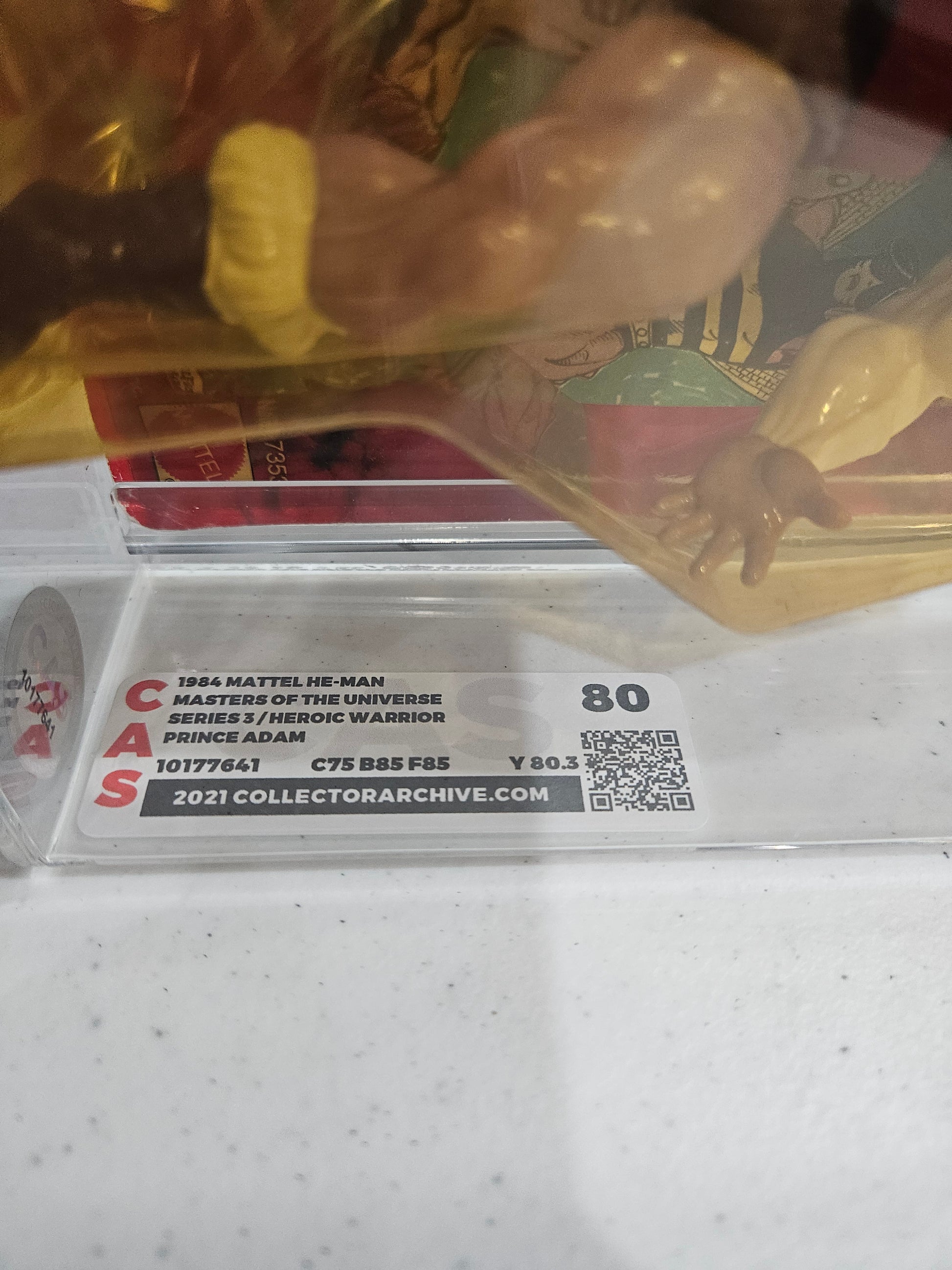 A royal rebel with archival-grade swagger! 👑 The 1984 Mattel Masters of the Universe Prince Adam, graded CAS 80, is a strong mid-tier example from Series 3, featuring He-Man’s alter ego in his iconic velvet vest and purple boots. With subgrades C75/B85/F85, this figure offers solid packaging integrity, a clean blister, and a near-mint figure—making it a standout for collectors building out their heroic lineage.