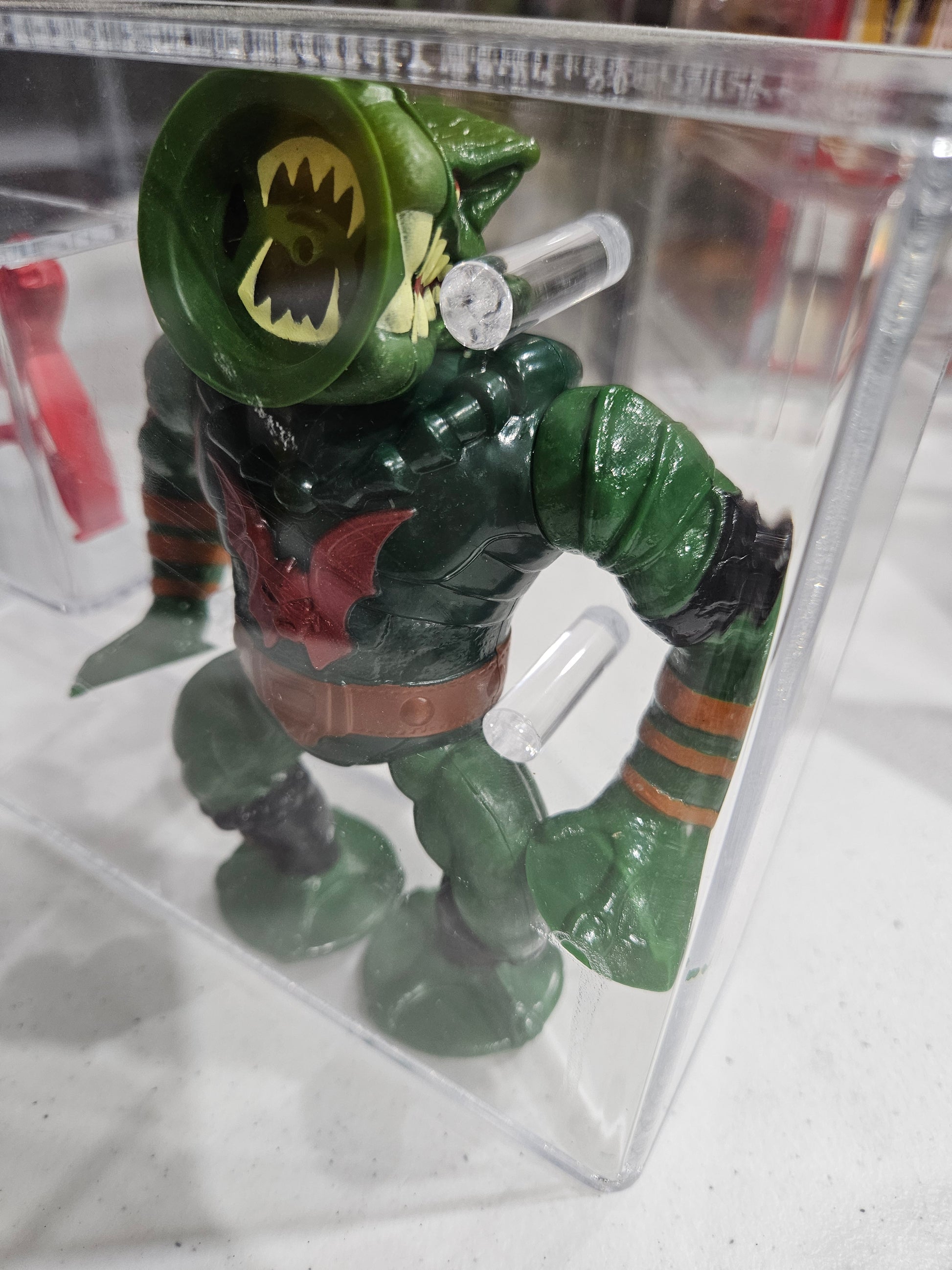 You've got your eye on a suction-powered swamp warrior with elite grading! 🧛♂️ The 1984 Mattel Masters of the Universe Leech, graded AFA U85 NM+, and marked Mexico for country of origin, is a standout among Horde figures—especially rare in unopened archival condition. This version features the Mexico factory stamp, which often includes subtle mold or paint differences prized by variant hunters.