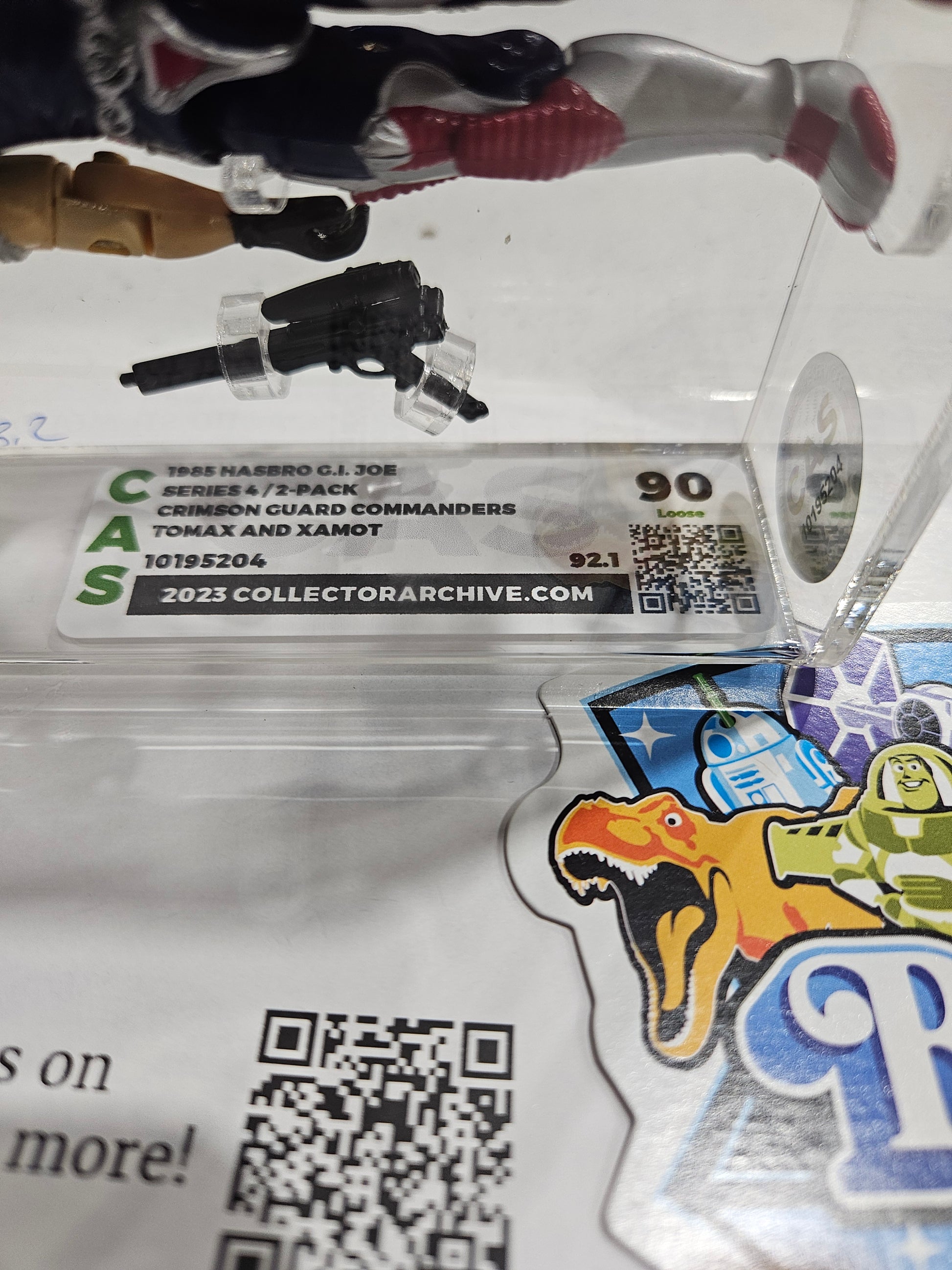 That’s a powerhouse piece! The 1985 Hasbro G.I. Joe Crimson Guard Commanders 2-Pack featuring Tomax and Xamot is a standout from Series 4 of the A Real American Hero line. Here's a breakdown of what makes your CAS 90 loose set so special:
