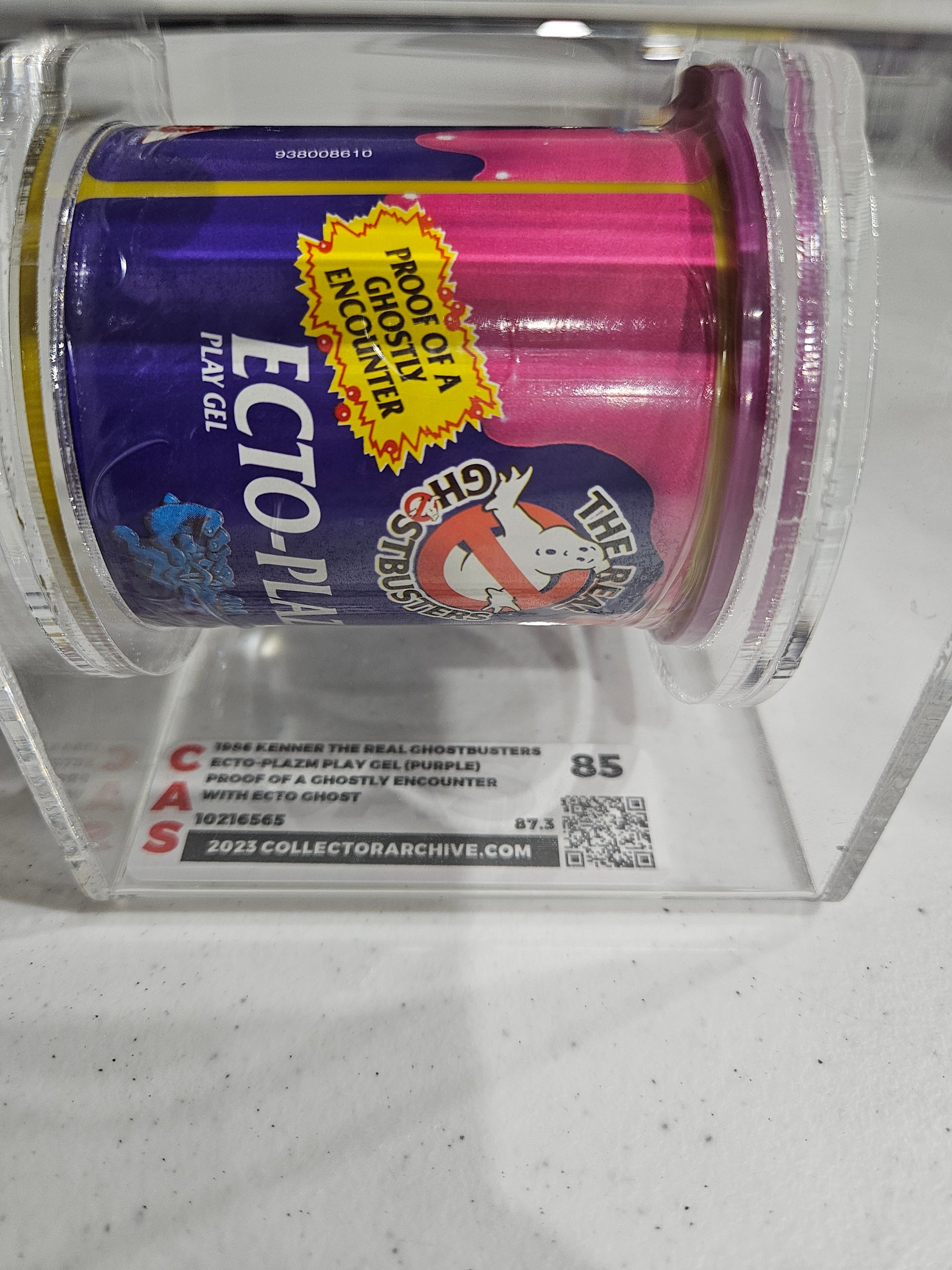 A slime-packed relic with spectral swagger! 💜 The 1986 Kenner The Real Ghostbusters Ecto-Plazm Play Gel, graded CAS 85, is a gooey gem from the height of Ghostbusters mania—this purple variant is especially prized for its vibrant color, sealed condition, and inclusion of a mini Ecto-Ghost, making it literal proof of a ghostly encounter.
