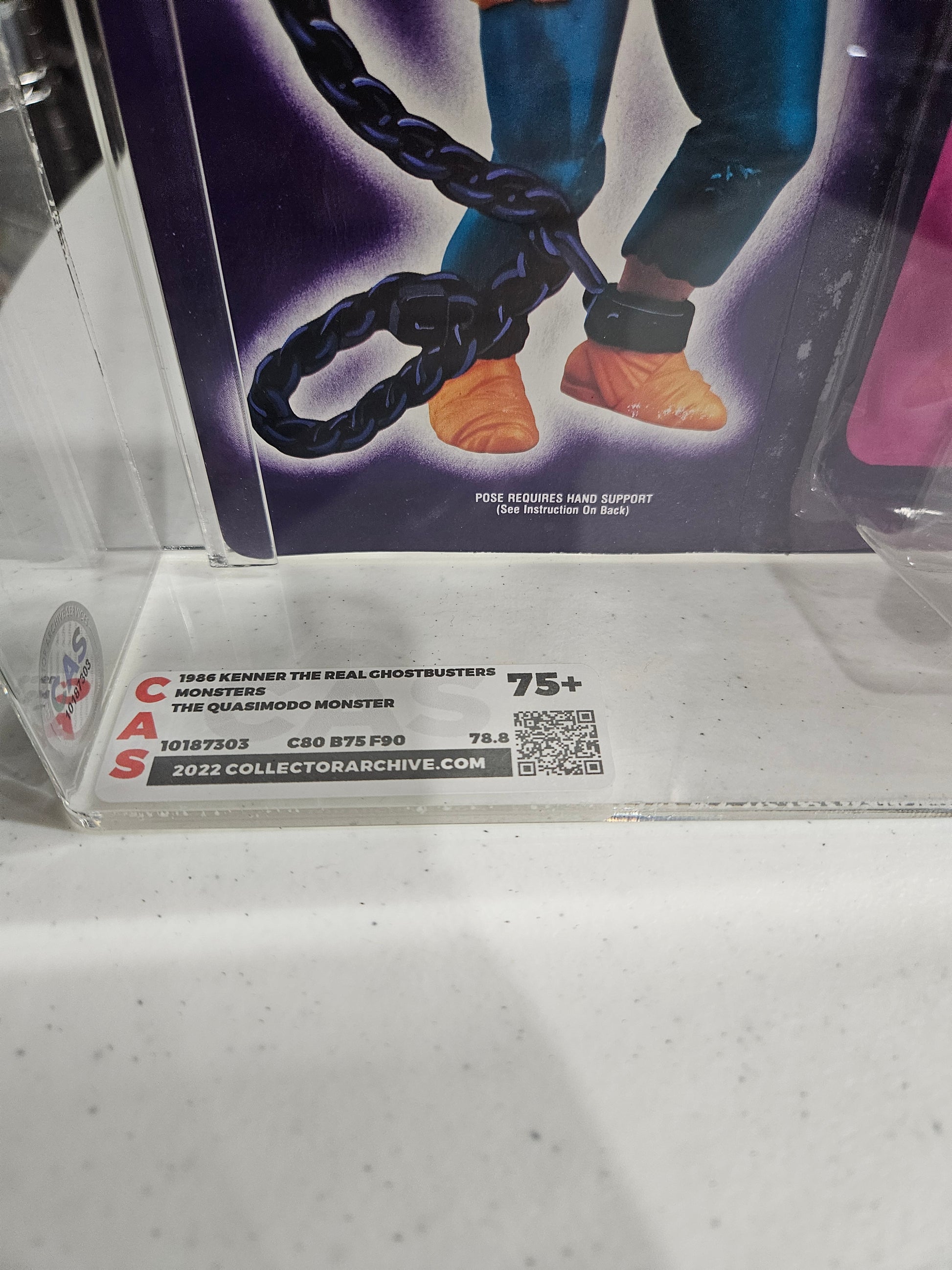 A hunchbacked haunt with grading grit! 🧟♂️ The 1986 Kenner The Real Ghostbusters Quasimodo Monster, graded CAS 75+ with subgrades C80/B75/F90, is a mid-tier archival example from the Monsters sub-line—bringing classic horror tropes into Kenner’s ghost-chasing universe with exaggerated sculpting and pop-up fright features.