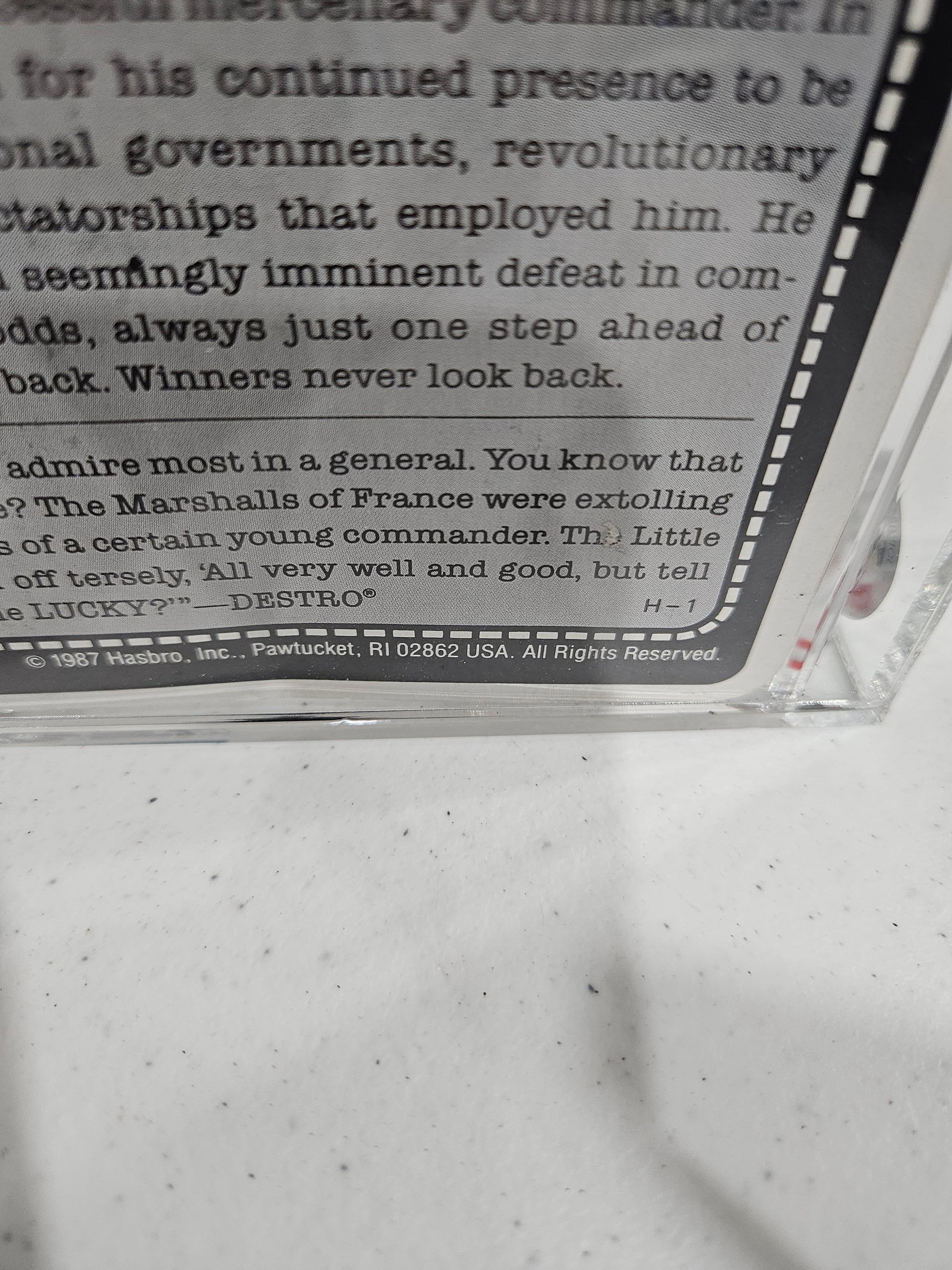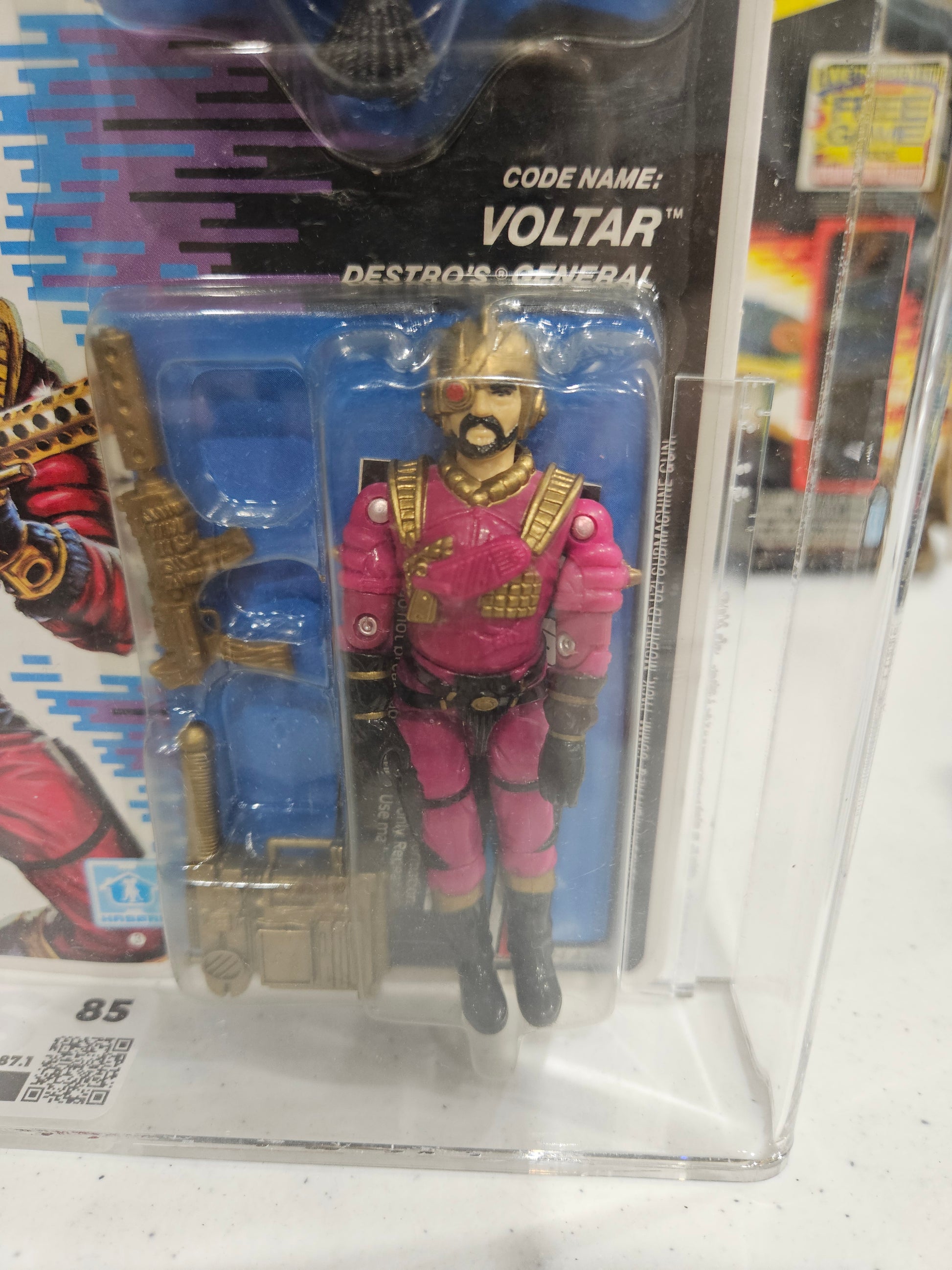 You're showcasing a high-grade example of one of Cobra’s most flamboyant field commanders: the 1988 Hasbro G.I. Joe Voltar, graded CAS 85 with subgrades C85 / B85 / F85, sealed on a Series 7 34-back card. As Destro’s general, Voltar brought battlefield brilliance and a magenta uniform to Cobra’s Iron Grenadiers sub-team—making him one of the most visually distinctive figures of the late '80s.