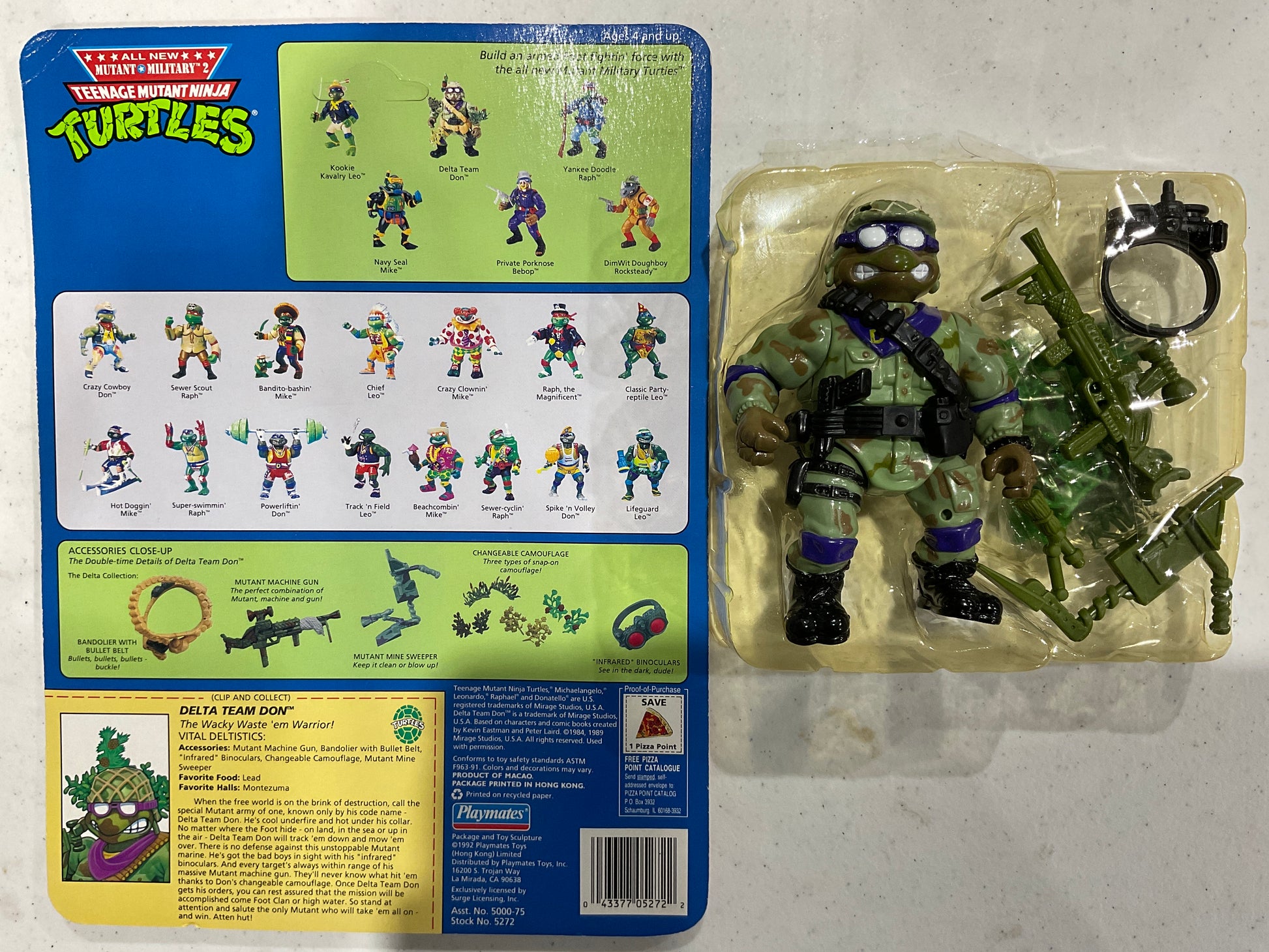 1992 Playmates TMNT Delta Team Don from Mutant Military set. Card is unpunched with some warp, & no front bubble. Figure is complete in bubble insert